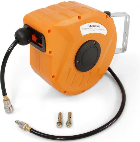 Sűrített levegős csörlő minden szokásos sűrített levegős berendezéshez. Egyesíti a rendet és a funkcionalitást. A 10 m hosszú tömlő jól védett a dob belsejében, és automatikus tekercselési funkcióval rendelkezik. A tömlőt a kívánt hosszúságban rögzítheti a golyós ütköző segítségével. Használatához nincs szükség elemre vagy áramra. Termék részletek: