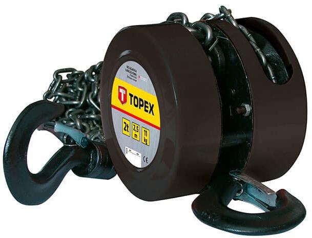 TOPEX láncos emelőcsörlő 2,5 m-es lánccal. Alkalmas műhelyekben, és egyéb munkaterületeken nagy terhek, pl. járműmotorok emeléséhez. A CE tanúsítvány igazolja az európai biztonsági normáknak való megfelelést. A TOPEX márka ezermestereknek készül.