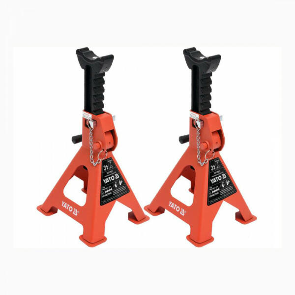 Professzionális négylábú tartóbak a YATO - tól , magasságállítási lehetőséggel, 280-420 mm tartományban, teherbírása 3 tonna. A bakkokon további biztonsági ék található. Felületüket korróziógátló réteg borítja. Tökéletes az emelő tehermentesítésére. Minden műhely alapfelszerelésének részét képezik.